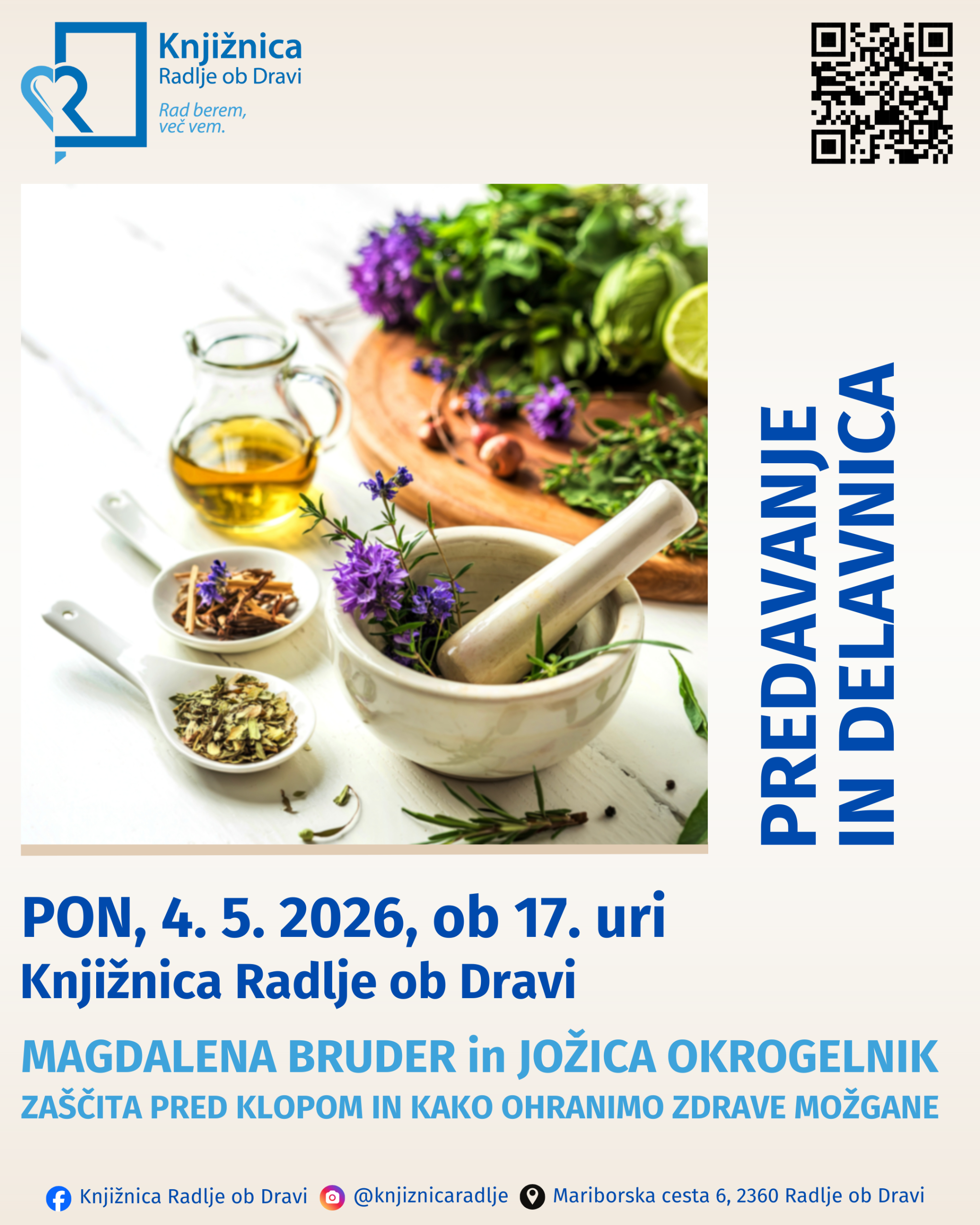Predavanje in delavnica / Magdalena Bruder in Jožica Okrogelnik: Zaščita pred klopom in kako ohranimo zdrave možgane