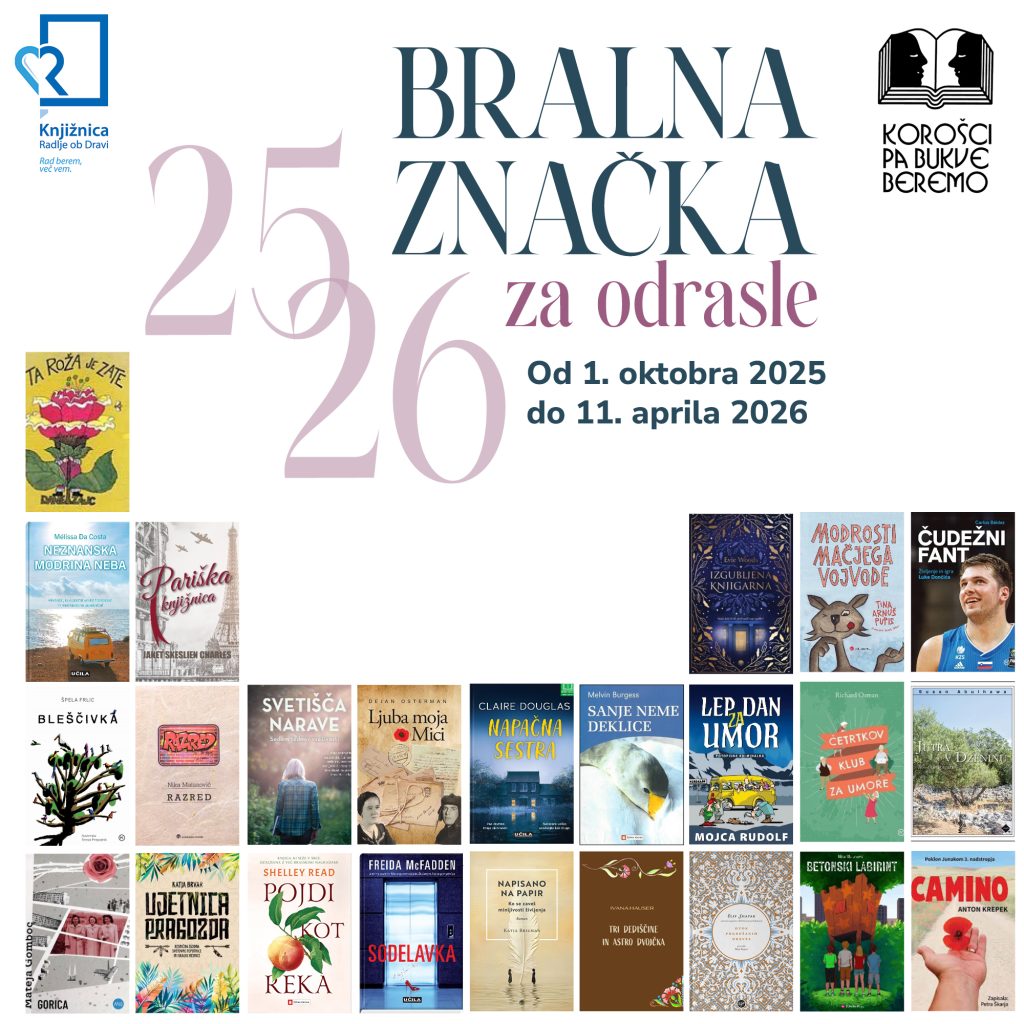 V Knjižnici Radlje ob Dravi smo v oktobru 2025 pričeli s 16 sezono bralne značke za odrasle pod motom »KOROŠCI PA BUKVE BEREMO«.